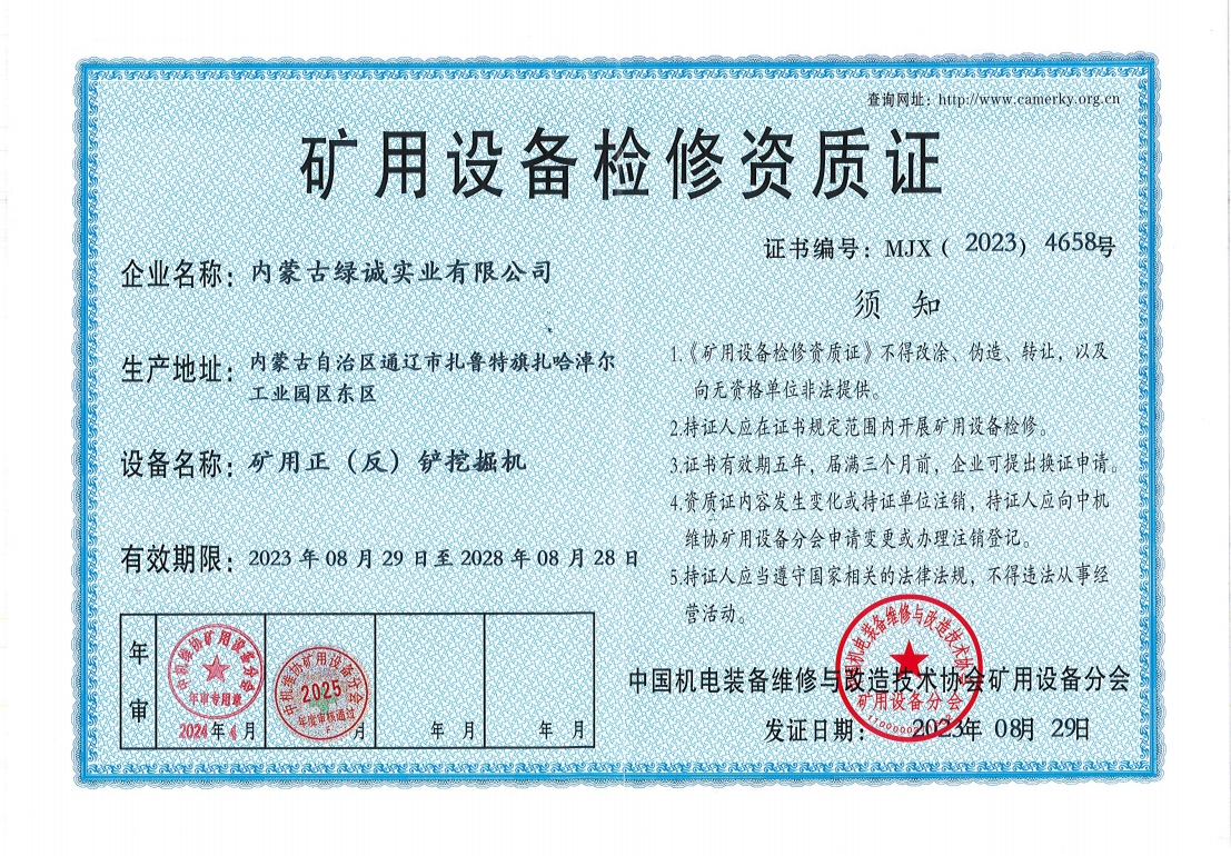 2018年我公司通過中國機(jī)電裝備維修與改造技術(shù)協(xié)會礦用設(shè)備分會審核并取得了9項(xiàng)礦用設(shè)備檢修資質(zhì)證書。公司本著“誠信為本 質(zhì)量為先 全心全意為客戶 ”的服務(wù)理念,圓滿完成各個(gè)廠礦的機(jī)械維修及配套服務(wù),期待與您共同合作。
